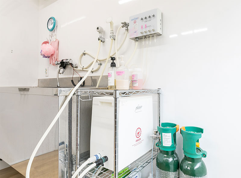 脂性肌や乾燥肌、アトピー性皮膚炎などの皮膚トラブルを持つわんちゃんにも、除菌効果があり低刺激の弱酸性高濃度炭酸泉は非常に効果的です。